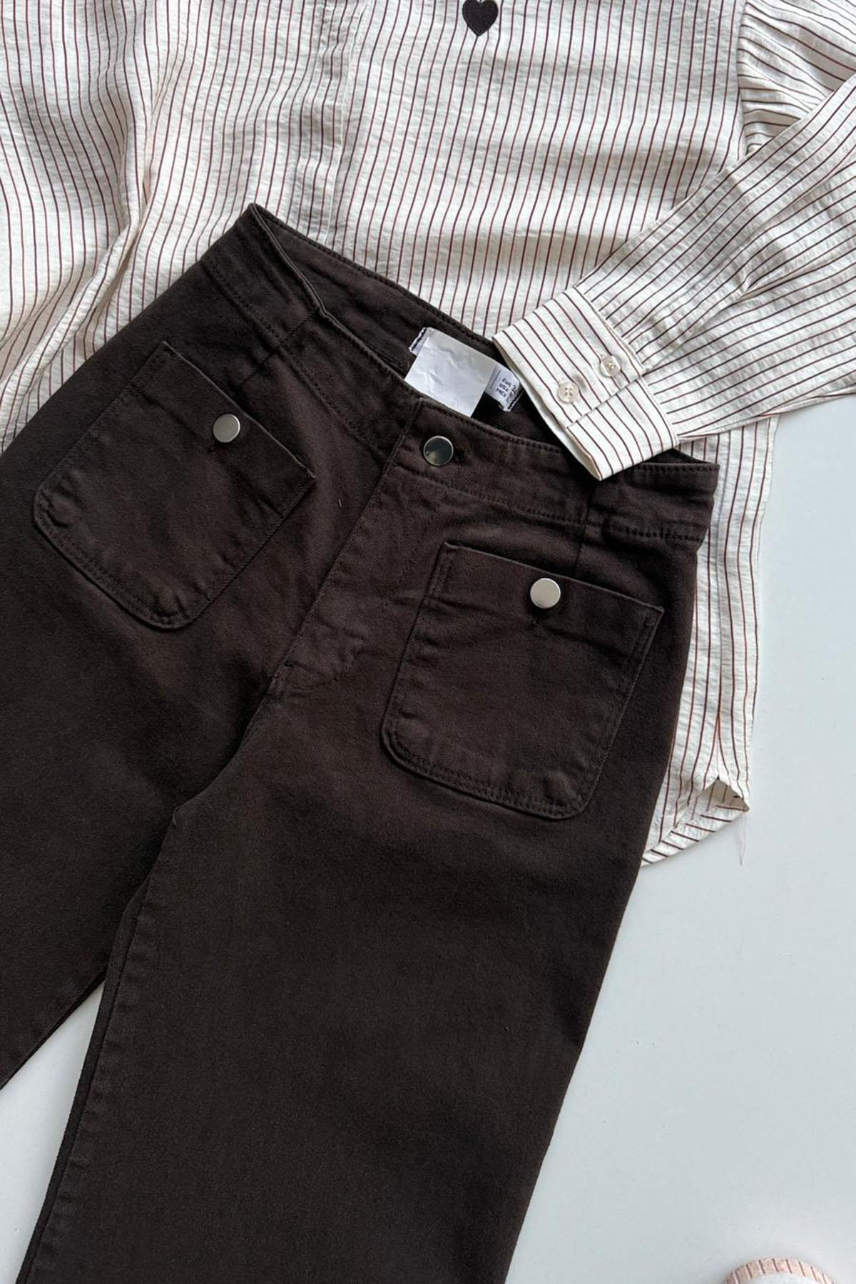 Kadın Önü Cep Detaylı Bol Paça Jean - KAHVE