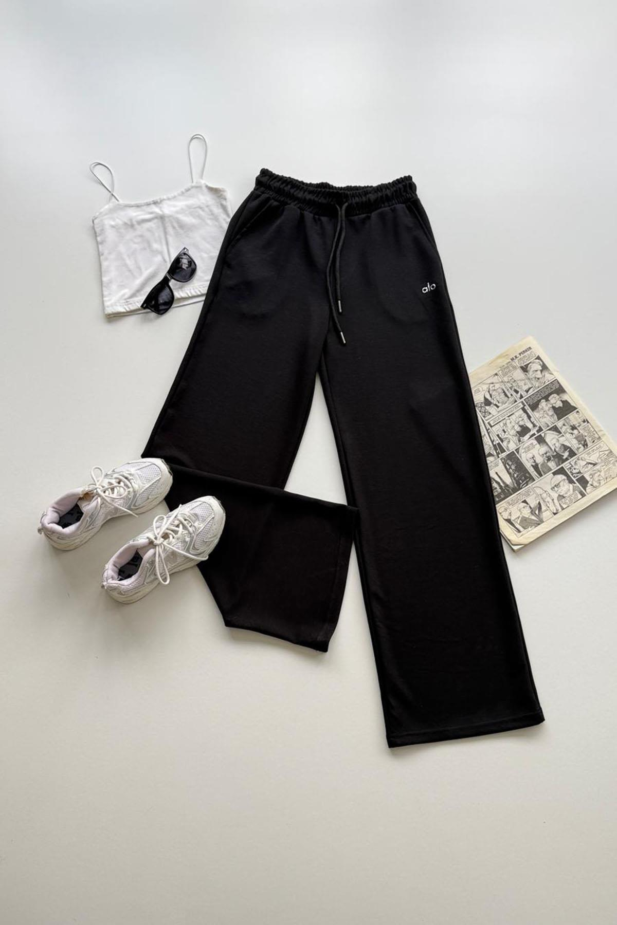 Kadın Alo Baskı Bol Paça Eşofman Altı - SİYAH