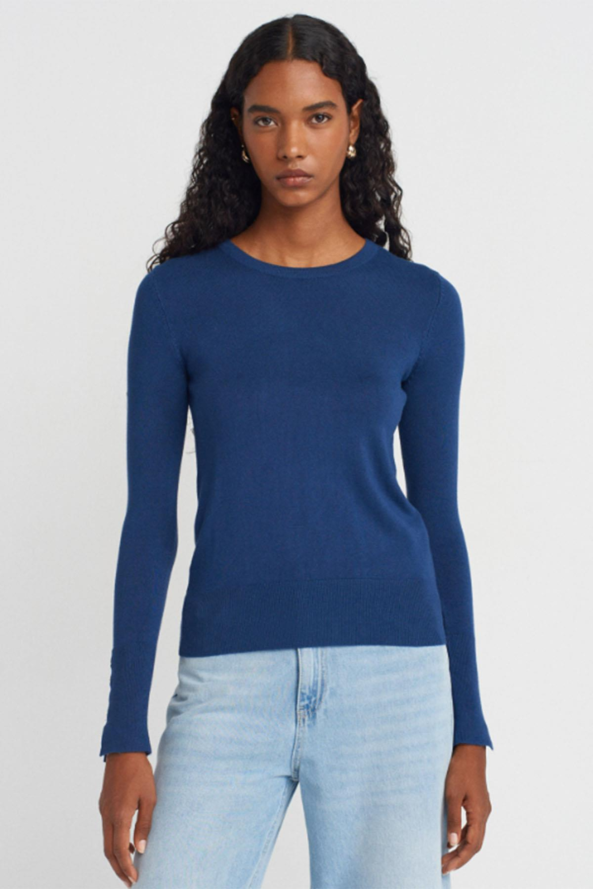 Kadın Bisiklet Yaka Kol Ortası Droplu Kazak - İNDİGO