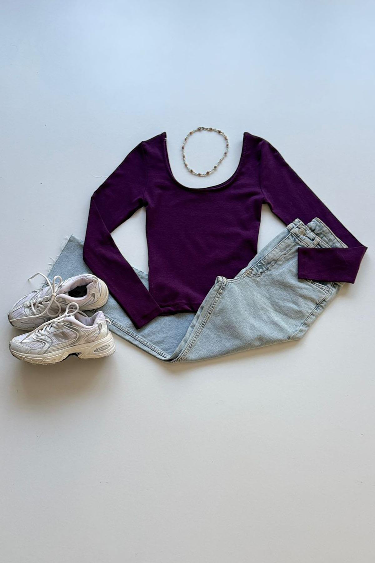 Kadın Derin Yaka Uzun Kollu Body - MOR