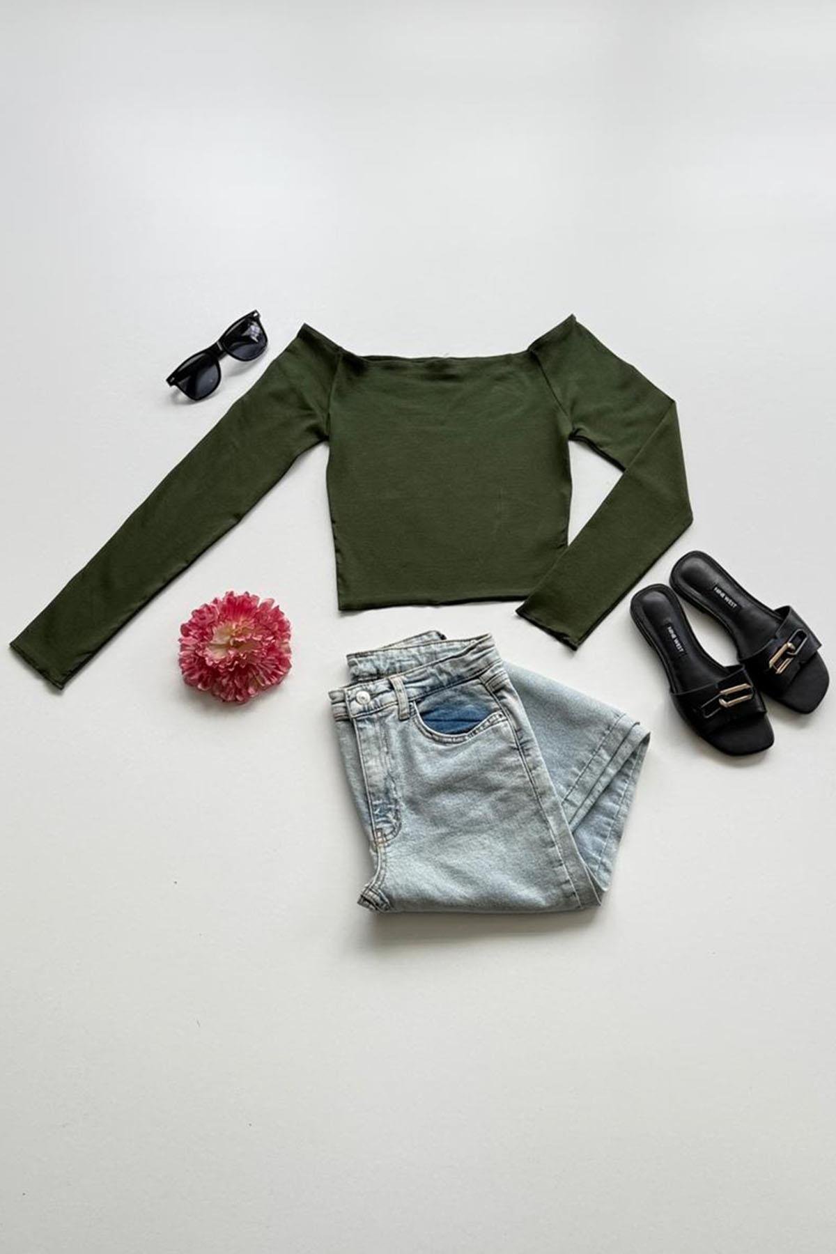 Kadın Kayık Yaka Uzun Kol Body - HAKİ