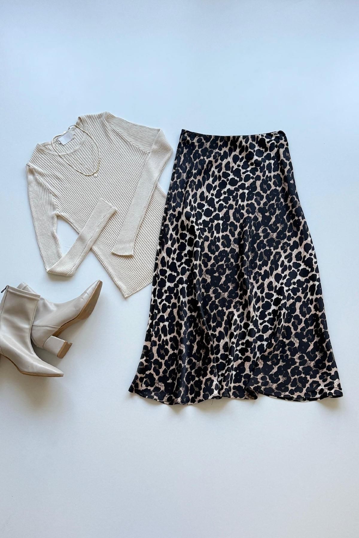 Kadın Leopar Desenli Saten Etek - SİYAH