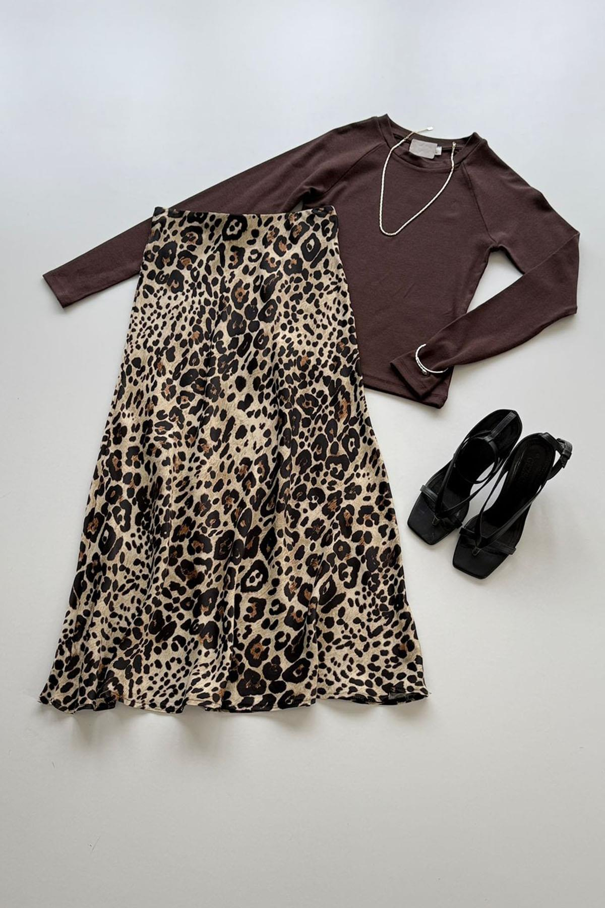 Kadın Leopar Desenli Saten Etek - SİYAH
