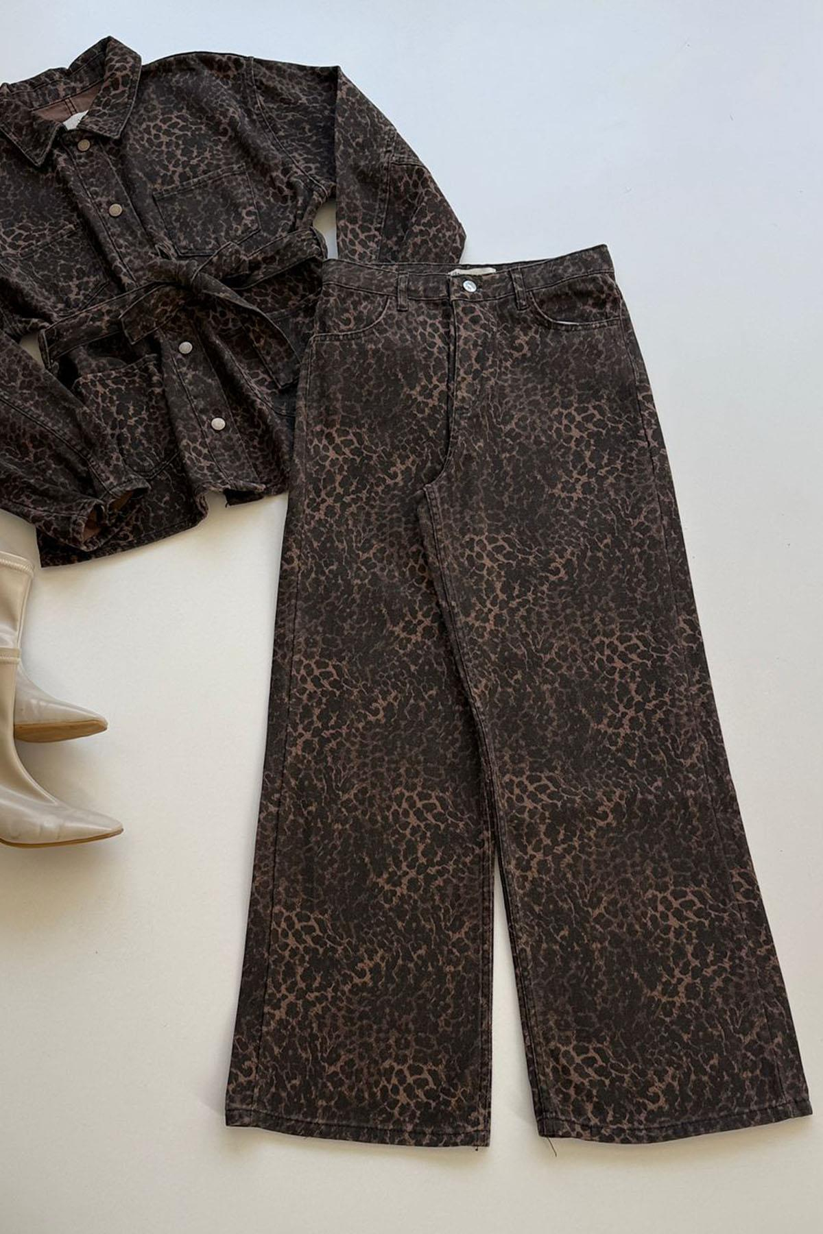 Kadın Leopar Gabardin Pantolon - KAHVE
