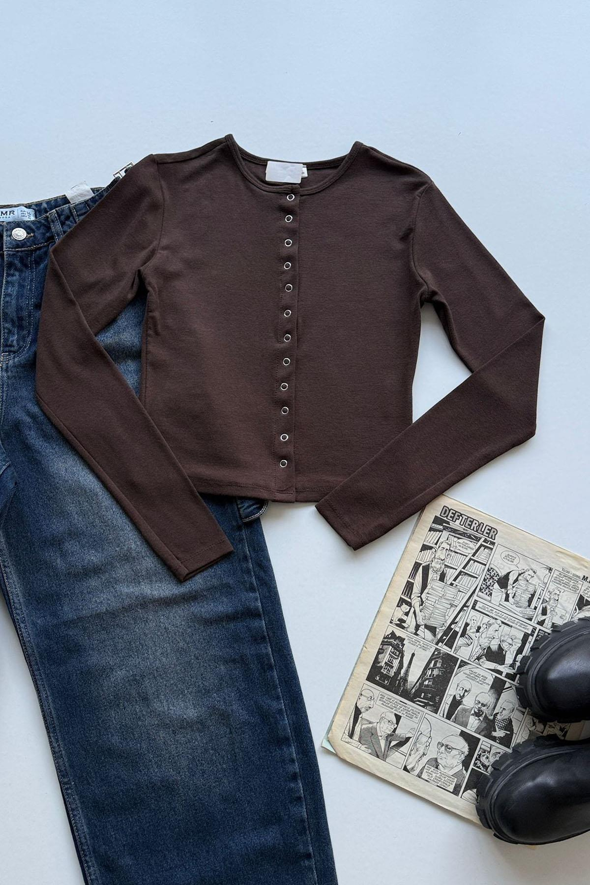 Kadın Modal Kumaş Önü Çıtçıtlı Body - KAHVE