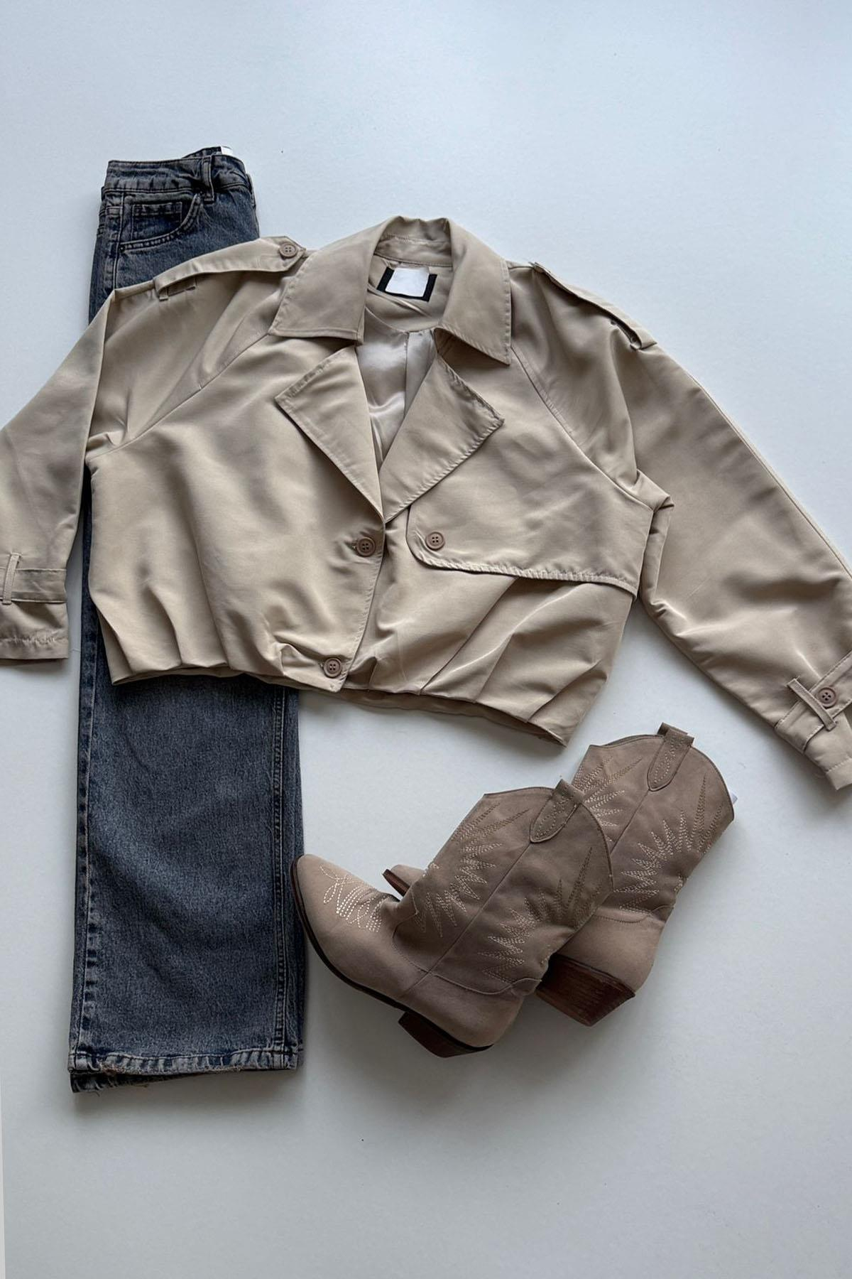 Kadın Pile Detaylı Astarlı Mini Trençkot - TAŞ