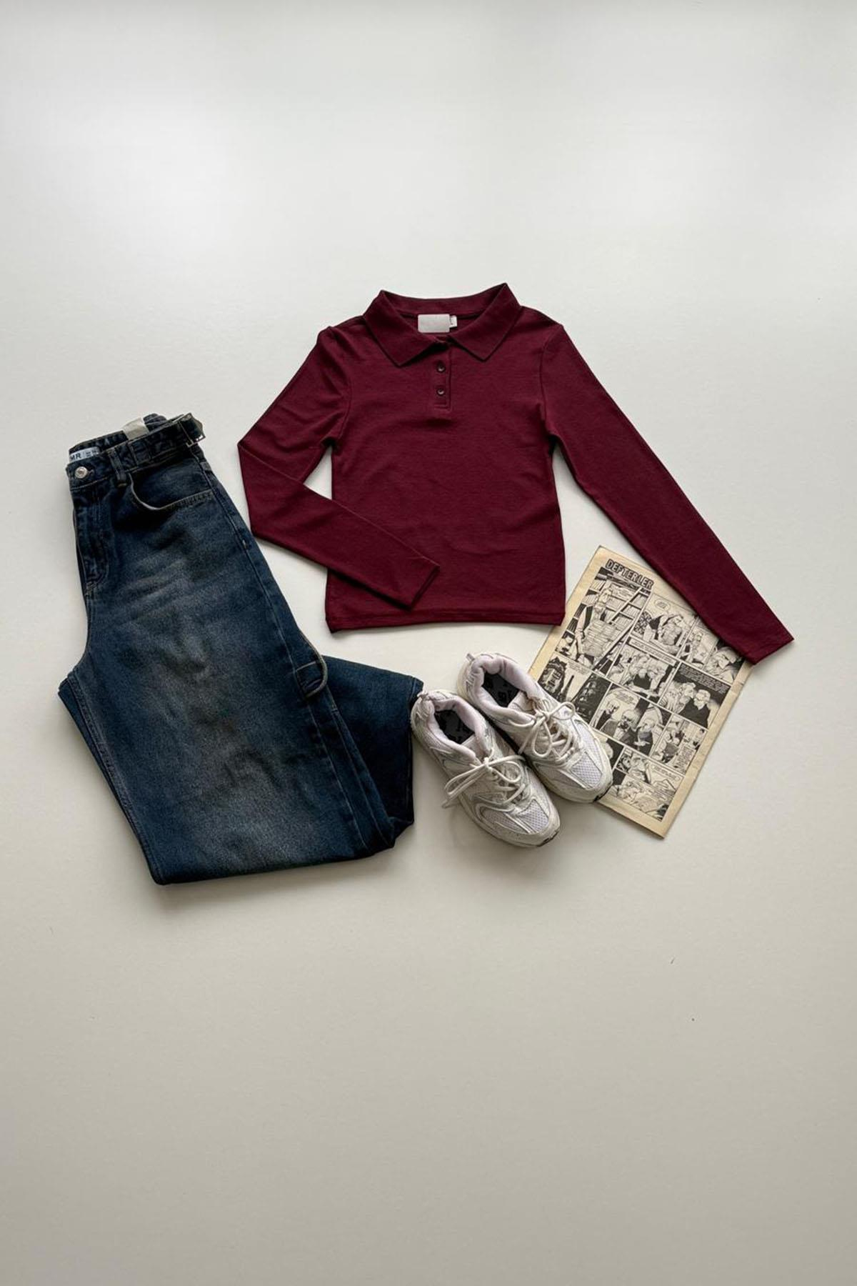 Kadın Polo Yaka Düğmeli Body - BORDO