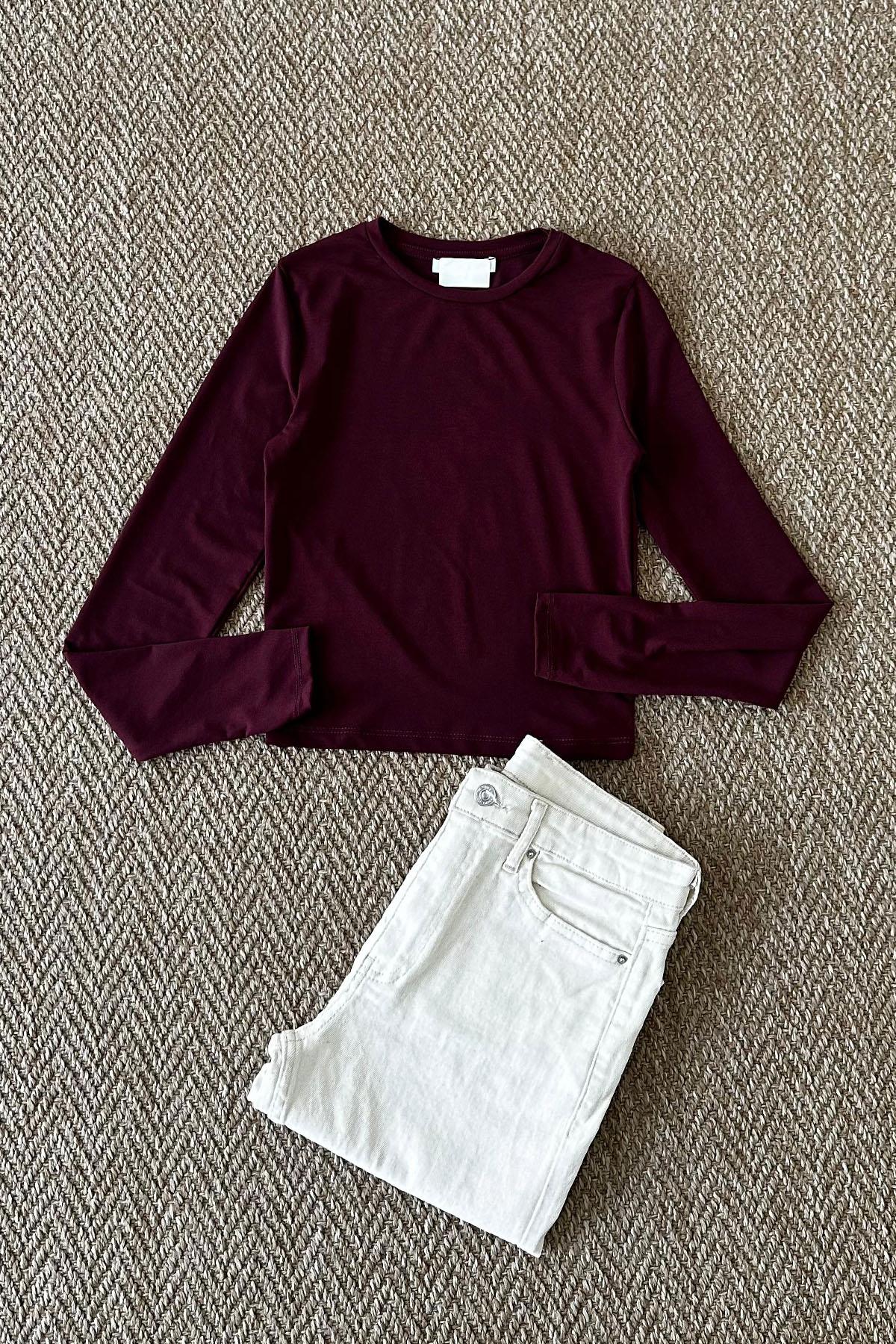 Kadın Sendy Kumaş Bisiklet Yaka Uzun Kol Body - BORDO