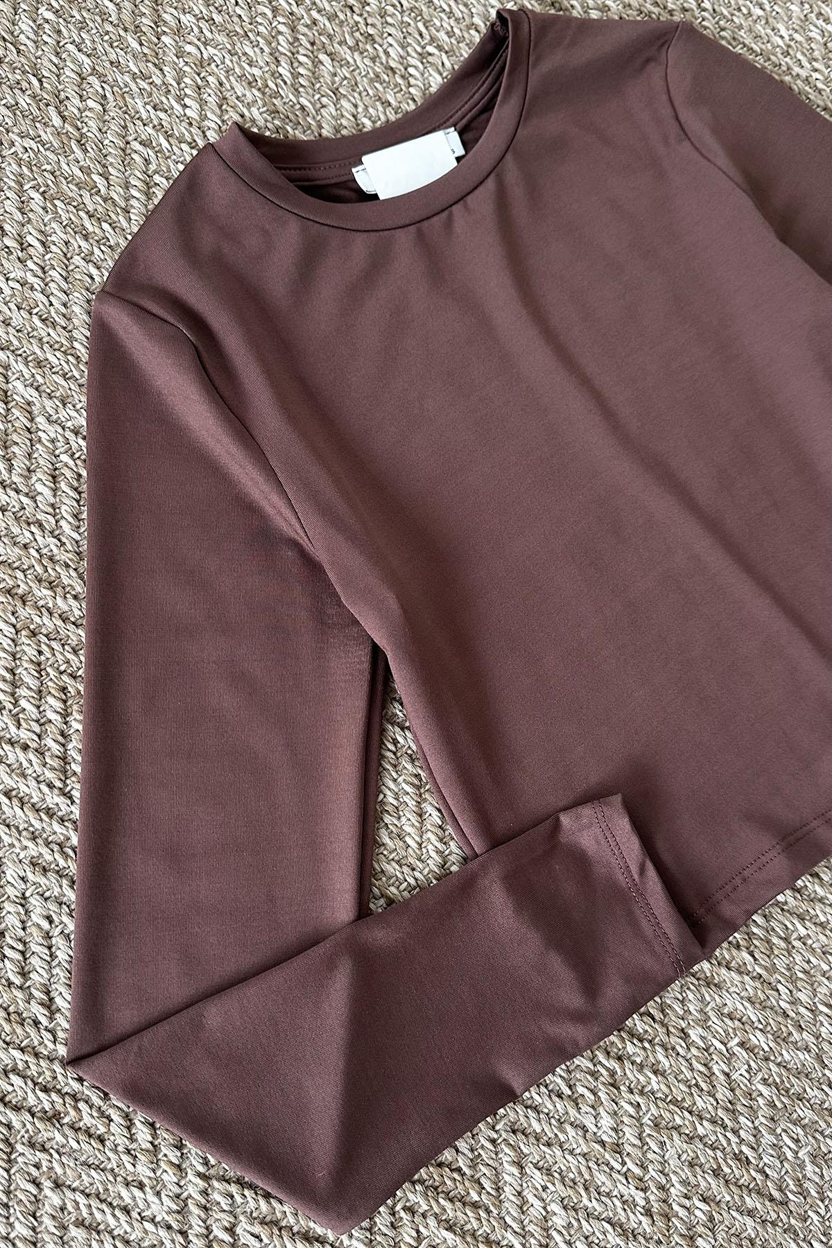 Kadın Sendy Kumaş Bisiklet Yaka Uzun Kol Body - KAHVE