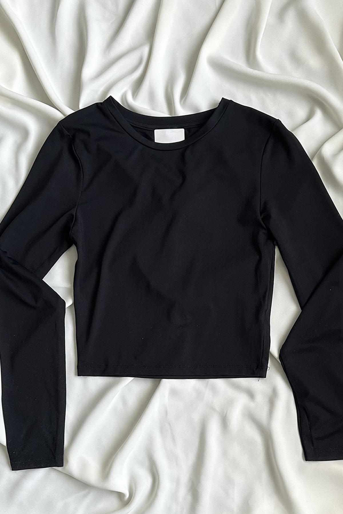 Kadın Sendy Kumaş Bisiklet Yaka Uzun Kol Body - SİYAH
