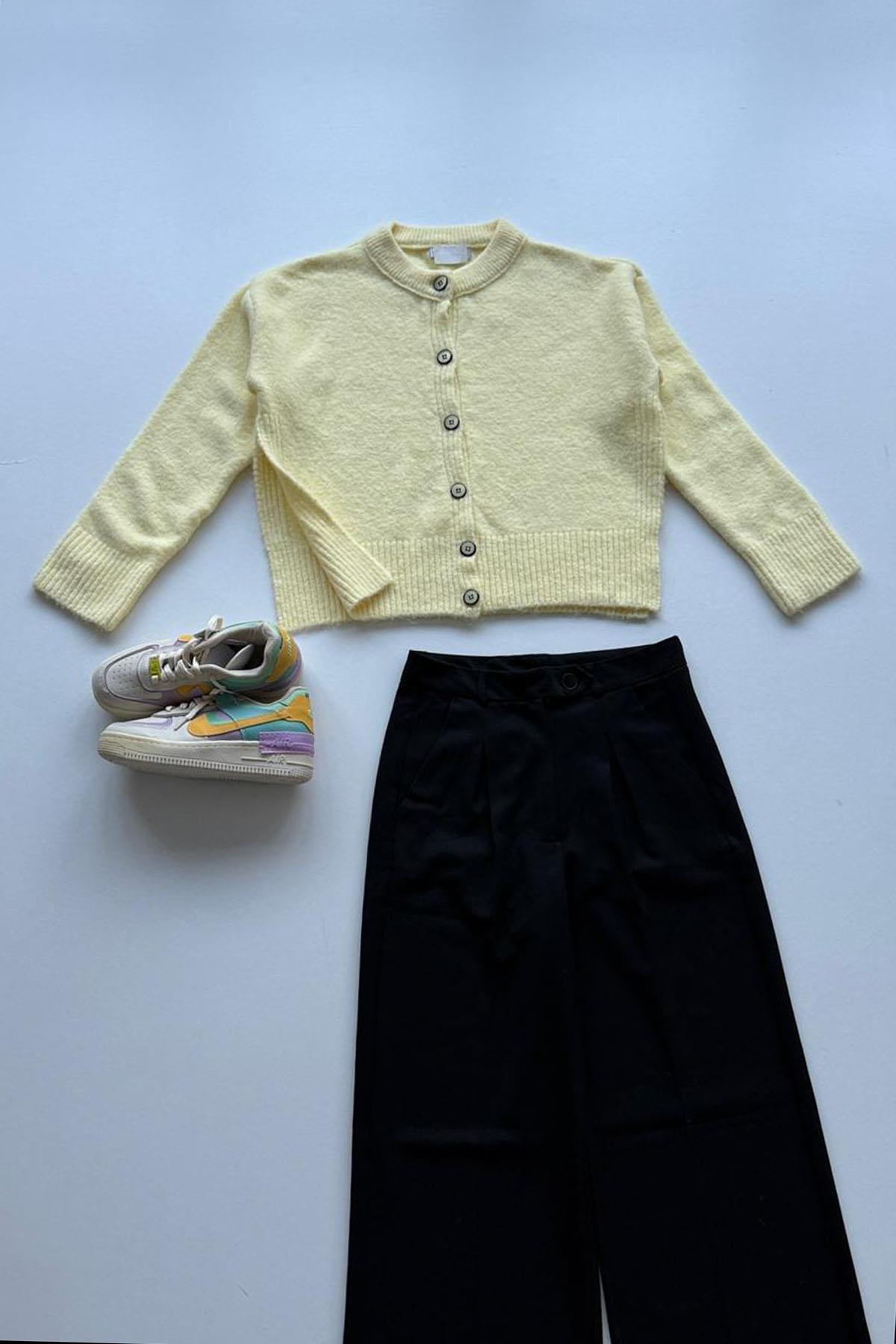 Kadın Yırtmaç Detaylı Düğmeli Hırka - SARI
