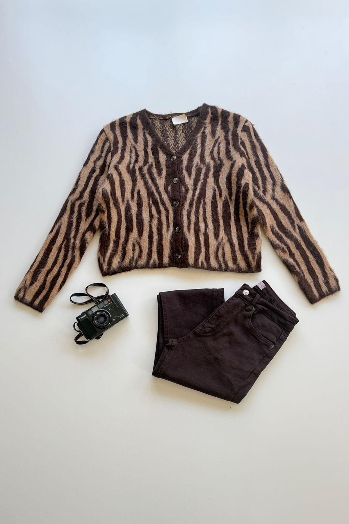 Kadın Zebra Desen Hırka - KAHVE